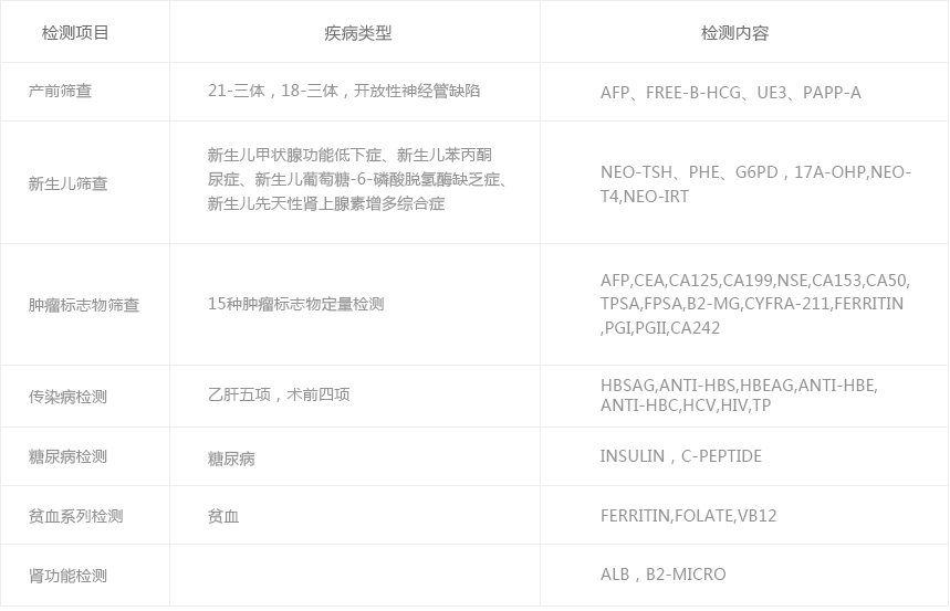 (5)可应用于糖尿病、甲状腺、产前筛查等多项检测项目